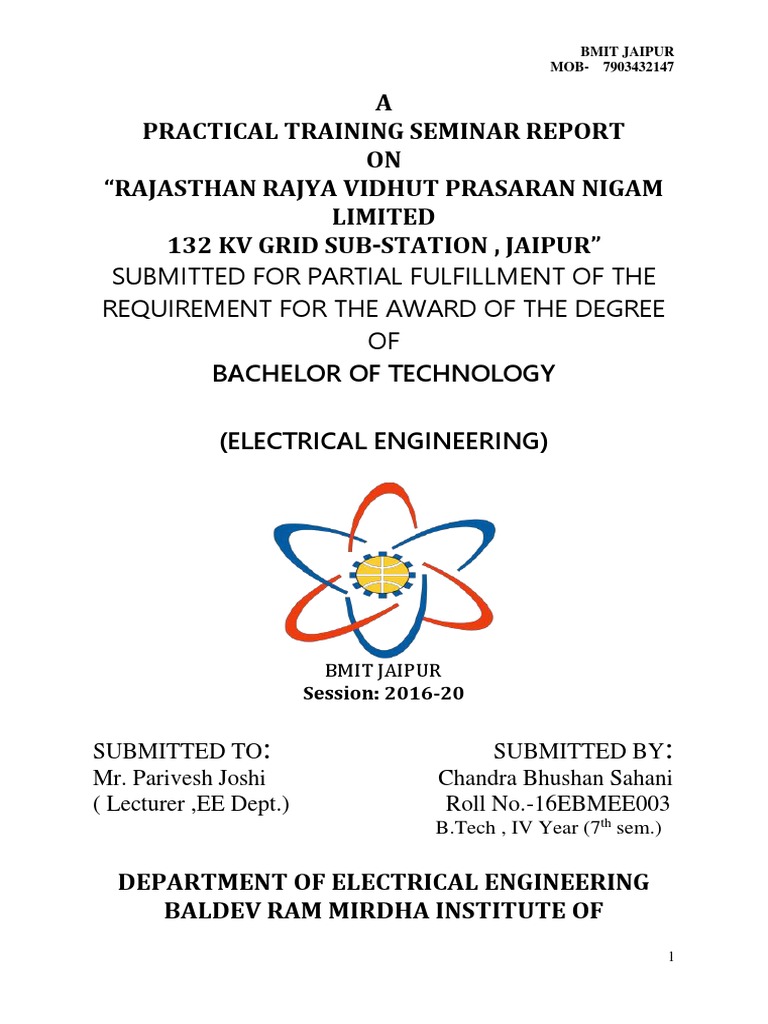 Pdf Training Report 400 Kv Gss Rrvpnl Manish Bishnoi Academia Edu