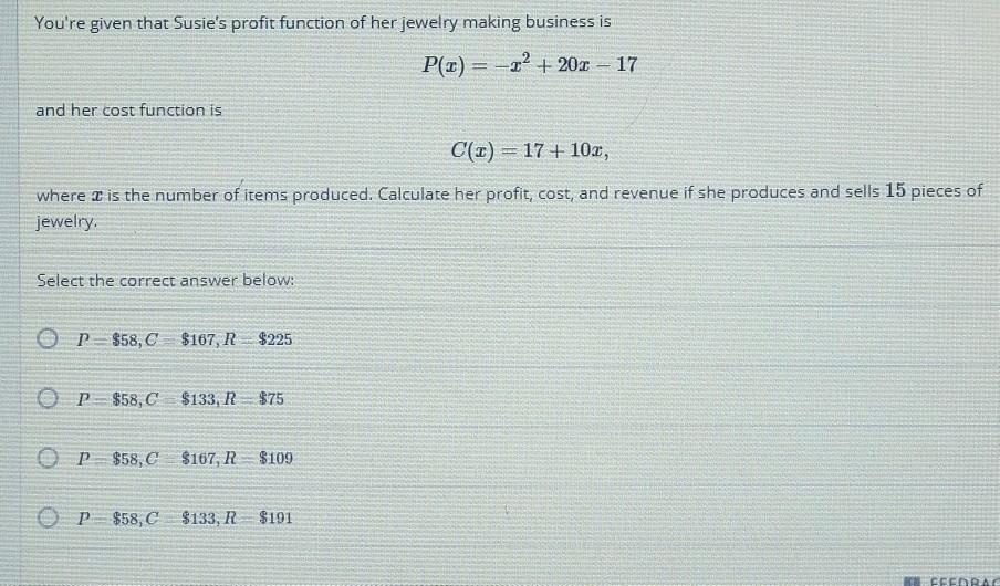 Solved You Re Given That Susie S Profit Function Of Her Chegg Com